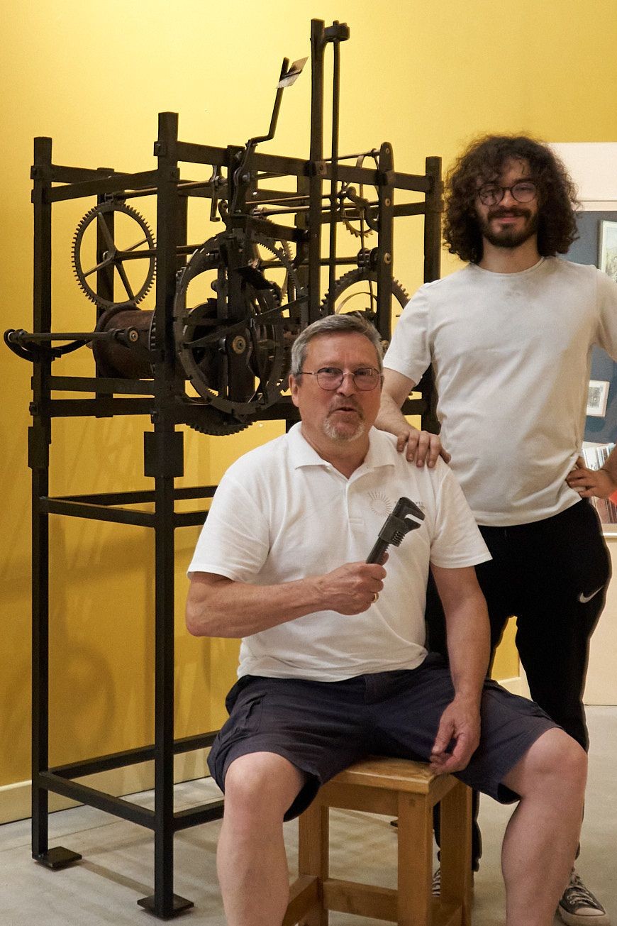 Démontée, restaurée et modélisée en 3D par François Simon-Fustier, maître horloger à la Croix-Rousse à Calluire-et-Cuire (69), elle a été transportée en pièces détachées, remontée et remise en fonctionnement sur place à quatre mains avec Hugo Bourdeix, du Lycée DIDEROT à PARIS.